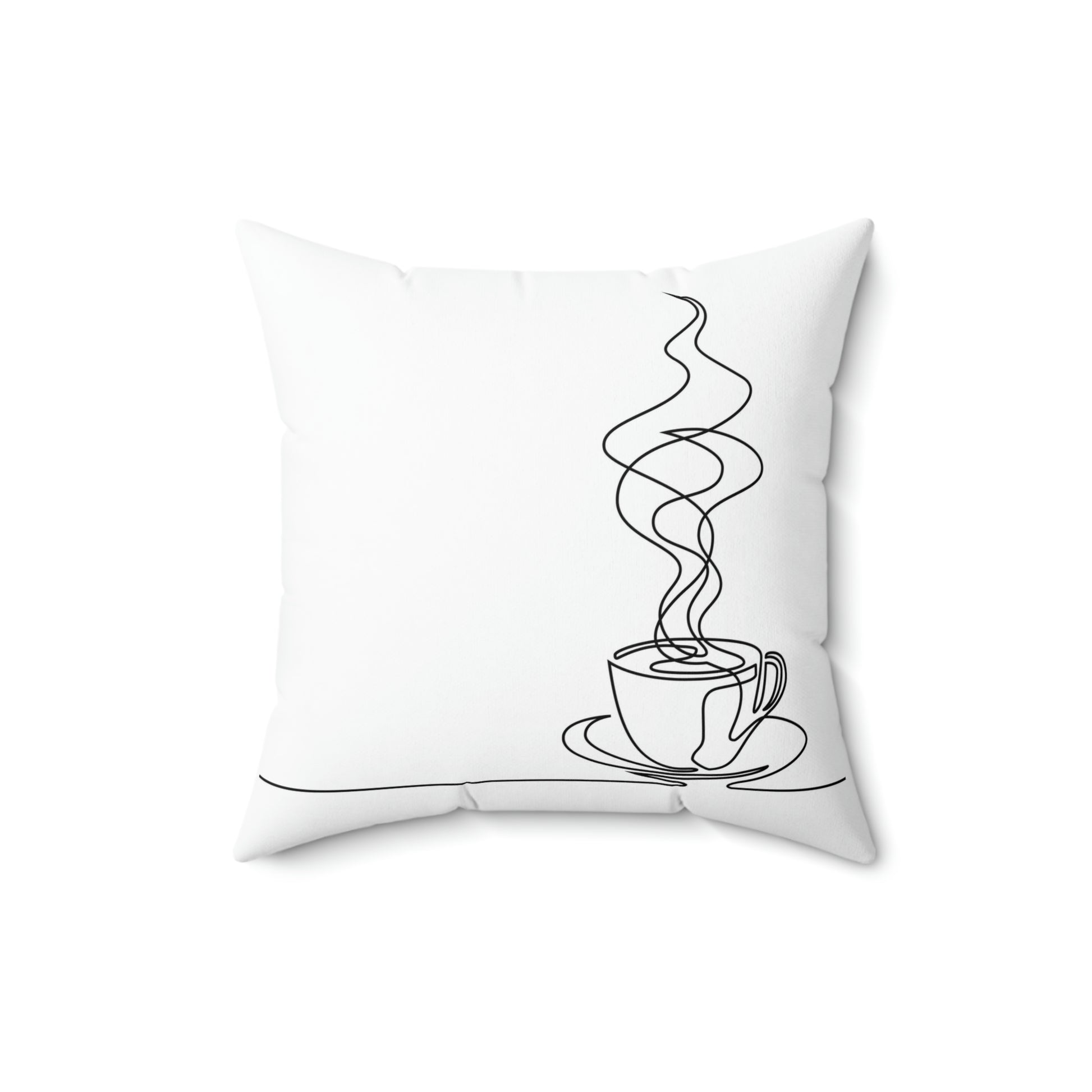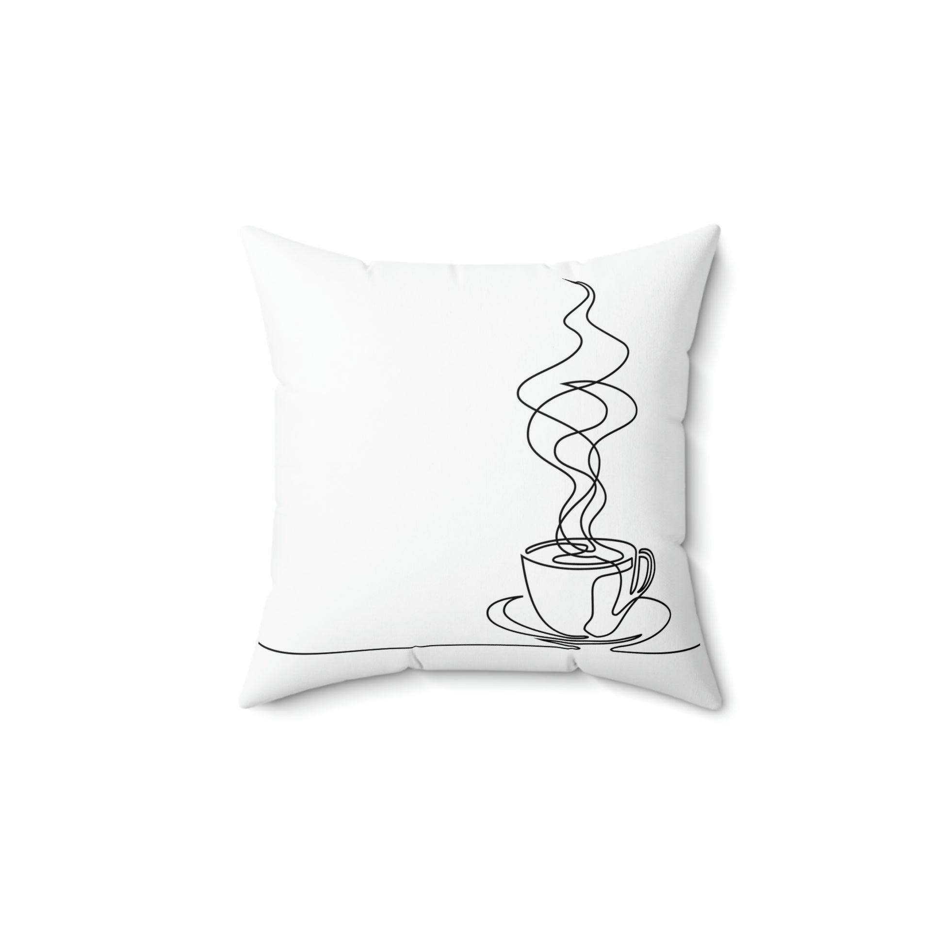 Spun Polyester Square Pillow Continuous line drawing of cup of coffee