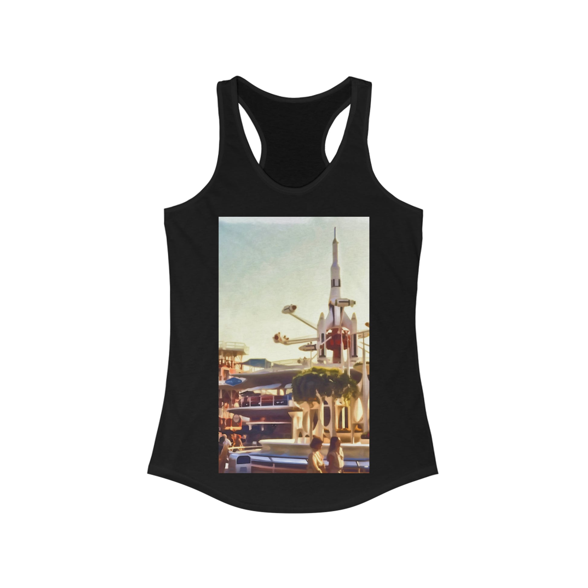 Women's Ideal Racerback Tank Disneyland Resort Rocket Jets Ride Retro
